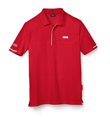 Sportowy akcent w Twojej garderobie – męska koszulka polo Audi Sport. Szybkoschnąca dzianina piqué