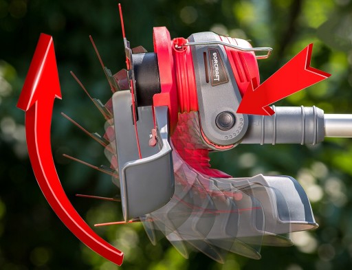 - Możliwość wyregulowania głowicy znacznie ułatwia pracę w trudno dostępnych miejscach, np. pod niskimi krzewami