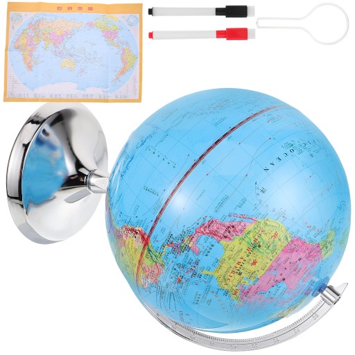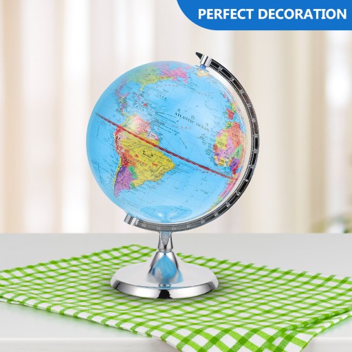 ✅Obrotowa mapa Ziemi na pulpicie zawiera nazwy oceanów, głównych miast, krajów, stolic, wysp i kontynentów. Zawiera jasne i łatwe do odczytania linie długości i szerokości geograficznej, równika i południka.