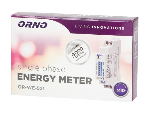 OR-WE-521 Licznik energii , 1-fazowy licznik energii elektrycznej, 40A, MID, wyjście impulsowe, podświetlenie, 1 moduł, DIN TH-35mm marki ORNO,