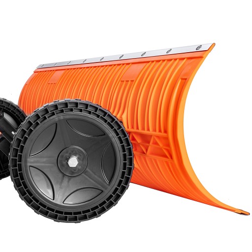 Pług wyposażony w koła pozwala z łatwością zepchnąć śnieg na bok, eliminując potrzebę podnoszenia. Sprawia, że przesuwanie śniegu jest gładkie i niemalże bezwysiłkowe, pozwalając Ci na efektywne i komfortowe odśnieżanie. Warto mieć go w swoim zimowym wyposażeniu!