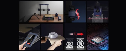 szybkie drukowanie 500 mm/s, nowa struktura o dużej mocy i dużej mocy obliczeniowej, ulepszone automatyczne poziomowanie LeviQ 2.0, inteligentne przenoszenie osi Z, rozmiar wydruku 8,7 "x 8,7" x 9,84 "