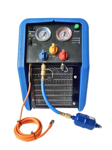 Kompresor bezolejowy, zdolny do odzyskiwania i napełniania różnych rodzajów czynników chłodniczych konstrukcja zaworu wielofunkcyjnego, automatyczny odpływ pozostałych czynników chłodniczych wentylator „super-cool” i wydajna konstrukcja skraplacza przyspieszają recykling i napełnianie. Wbudowana rączka ułatwiająca wyjmowanie. Wbudowane zabezpieczenie wysokiego ciśnienia. Automatyczny wyłącznik "shut-off" odcinający. Z separatorem oleju i gazu do filtrowania i oczyszczania czynnika chłodniczego