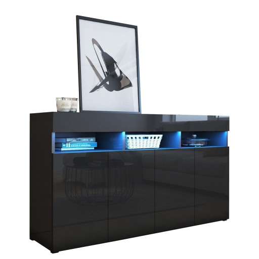Комод для гостиной, черный глянцевый, 140 см ПРЕМИУМ
