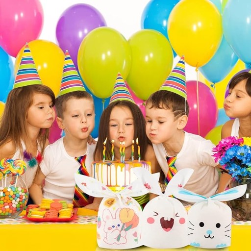 50 szt. torebek na cukierki urodzinowe, 10 uroczych wzorów