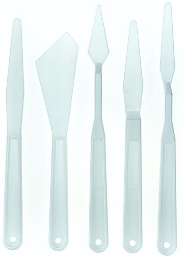 Zestaw 5 plastikowych szpachelek z serii Simply. Szpachelki są elastyczne i posiadają różne profile. Produkowane przez firmę Daler-Rowney. Nadają się do różnych farb" akryl, olej, tempera itp. Dzięki szpachelką można uzyskać efekt struktury nakładając grubą warstwę farby.