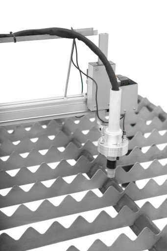 Maszyna jest wyposażona w THC (napięciowa regulacje wysokości palnika plazmy). Precyzyjna regulacja (+/- 0.1mm) odległości palnika plazmowego od blachy w trakcie cięcia Większa dokładność oraz brak wad, które posiadają czujniki pojemnościowe i talerze rolkowe Parametry regulatora automatycznie pobierane z Tabeli Automatycznego Doboru Parametrów Cięcia.