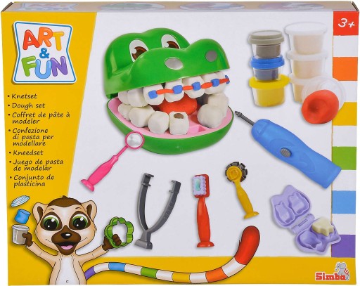 Zestaw z masą plastyczną to świetny sposób na oswojenie malucha z nielubianymi przez dzieci wizytami u stomatologa. Maluch może poznać podstawowe mechanizmy leczenia zębów i zrozumieć jak istotna jest odpowiednia higiena jamy ustnej.