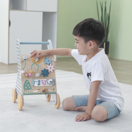 Pchacz edukacyjny dla dzieci zaprojektowany przez cenionego producenta zabawek dla dzieci od 18 miesiąca firmę Viga Toys. Funkcyjna zabawka dla najmłodszych pełni jednocześnie rolę chodzika oraz panelu edukacyjnego dzięki, któremu dziecko uczy się dopasowywania kształtów i kolorów. Obrotowe elementy w postaci kółek zębatych, tory ze zwierzątkami na panelu oraz jego bokach zaciekawią maluszka i uatrakcyjnią zabawę.