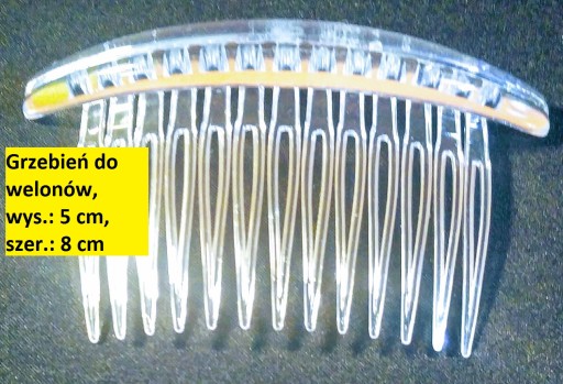 Transparentny grzebień do welonów, woalek. Idealny do welonów ślubnych, stroików i innych zastosowań krawieckich.
