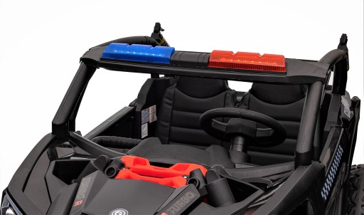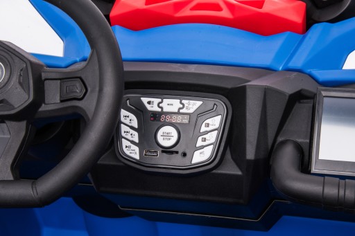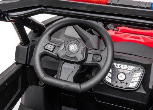 Pojazd napędzany czterema mocnymi silnikami 24V zasilanymi akumulatorem. Posiada wolny start- płynne ruszanie. Jest duży, bezpieczny, Łatwy w obsłudze i bardzo mocny. Spokojnie pokonuje małe nierówności, dla najmłodszych fanów motoryzacji. Posiada wygodne siedzenia, wyposażone w pas bezpieczeństwa oraz pilot zdalnego sterowania dla rodzica, który pozwala sterować samochodem w przód i tył a także w lewo i prawo. Za pomocą pilota można również zatrzymać pojazd.