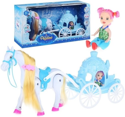 PIĘKNA KAROCA Z CHODZĄCYM KONIEM I LALKĄ- LODOWĄ KSIĘŻNICZKĄ