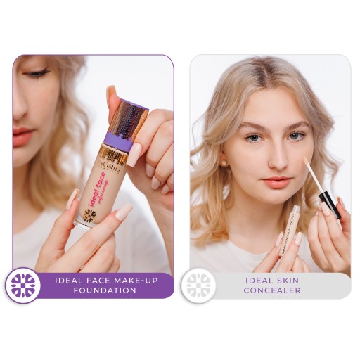 Ingrid Cosmetics Zestaw do makijażu: kryjący podkład Ideal Face 10 Light Ivory, kryjący korektor Ideal Skin 09