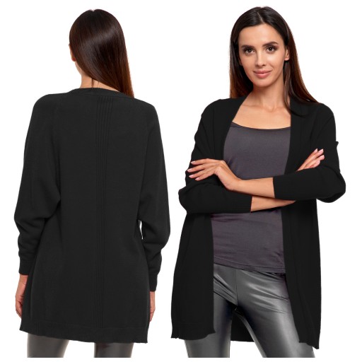 DŁUGI SWETER KARDIGAN DAMSKI NARZUTKA KOBIECY SWETEREK MORAJ CZARNY R.M