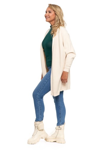 Kardigan jest wykonany z wyjątkowo miękkiego i przyjemnego w dotyku materiału, który gwarantuje uczucie ciepła i wygody. Bez zapięcia, jego design jest prosty i nowoczesny, co pozwala na niezobowiązujące noszenie go jako luźnej warstwy na innych ubraniach.