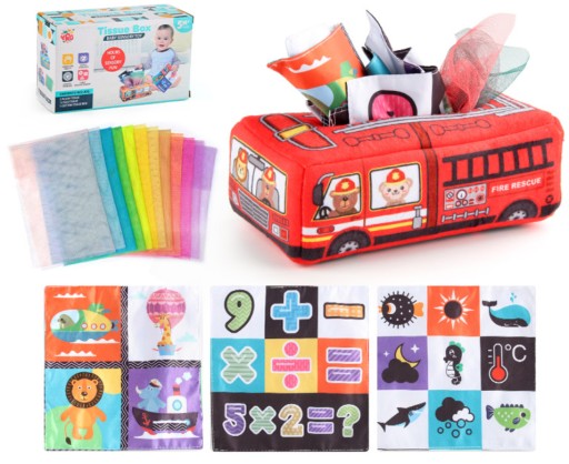Pluszowe pudełko z chusteczkami to zabawka, którą pokocha każde dziecko! Wkładanie i wyjmowanie z opakowania chusteczek dostarczy maluchom masę radości. Chusteczki są nie tylko przyjazne w dotyku, ale przez zróżnicowane, kolorowe obrazki wspomagają też rozwój dzieci w pierwszych latach życia!