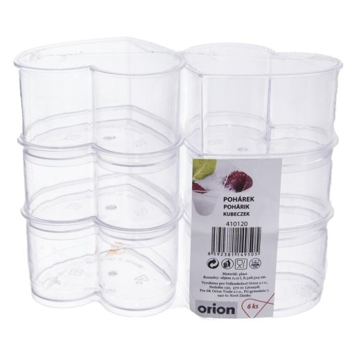 Zestaw 6 sztuk pucharków w kształcie serca do serwowania słodkich i słonych przekąsek. Idealne do podania przekąsek, mini deserów. Niezwykle efektownie prezentują się na stole podczas przyjęć. Dzięki nim możemy przygotować słodkie stoły oraz poczęstować gości mini przekąskami. W wersji mini serwowanie deserów oraz przekąsek jest higieniczne, dlatego sprawdzi się podczas bankietów oraz konferencji. Pojemniki można używać również wielokrotnie, dzięki wytrzymałym materiałom. Oryginalny produkt czeskiej marki Orion. Wyprodukowano zgodnie z europejskimi standardami.