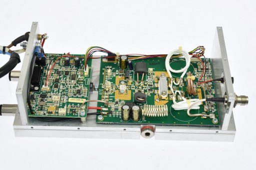 Używany, całkowicie sprawny zestaw składający się z akustooptycznego modulatora światła lasera CO2 dużej mocy powyżej 150W w komplecie z pobudzającym go generatorem dużej mocy częstotliwości radiowej oraz przewodem w.cz i przewodem sprzężenia zwrotnego. Zestaw zdemontowany z zestawu do obróbki laserowej elektroniki. Zestaw całkowicie sprawny, maszynę zdemontowano z powodu modernizacji linii przemysłowej.