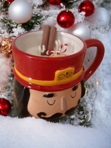 Niewątpliwie pomoże Ci w tym pięknie wykonany kamionkowy kubek, świąteczny Dziadek, w którym została zalana nasza świeca.