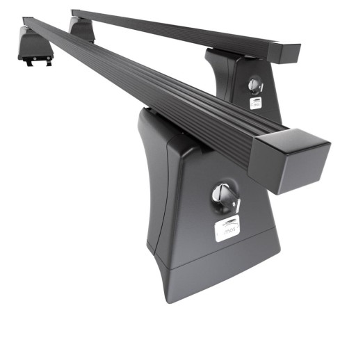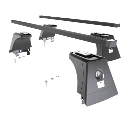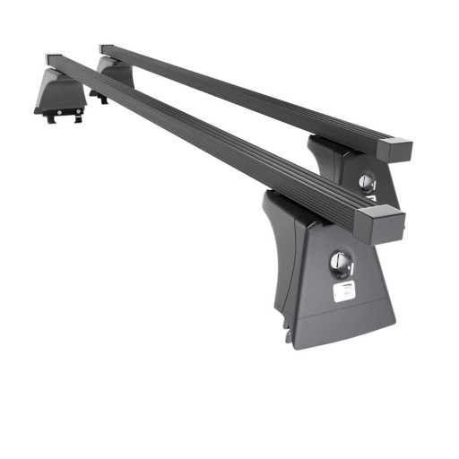 Bagażnik dachowy bazowy składa się z 2 solidnych stalowych belek oraz 4 uchwytów (tzw. łap) Beta β-102, które dopasowane są do typu dachu auta oraz do jego modelu i generacji.