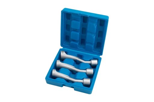 Komplet składa się z trzech kluczy o rozmiarach od 14 do 19 milimetrów umieszczonych w solidnym etui z tworzywa sztucznego.