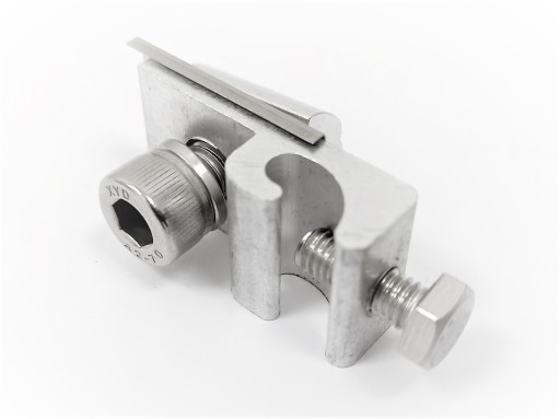 - Zacisk uziemiający służy do mocowania przewodów uziemiających do szyn solarnych, mostków trapezowych i ekierek.