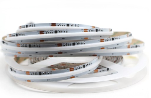 Taśmy LED w technologii COB zapewniają bardziej jednorodne, liniowe światło bez widocznych punktów świetlnych. Taśmy w technologii COB mogą być montowane w płytkich profilach, bez ryzyka powstania widocznych punktów świetlnych.