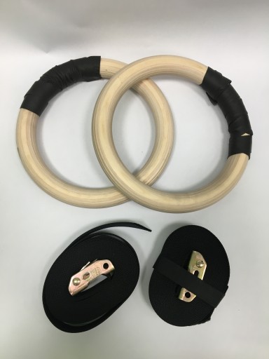 PROFESJONALNE DREWNIANE KÓŁKA -RINGI GIMNASTYCZNE Z TAŚMAMI