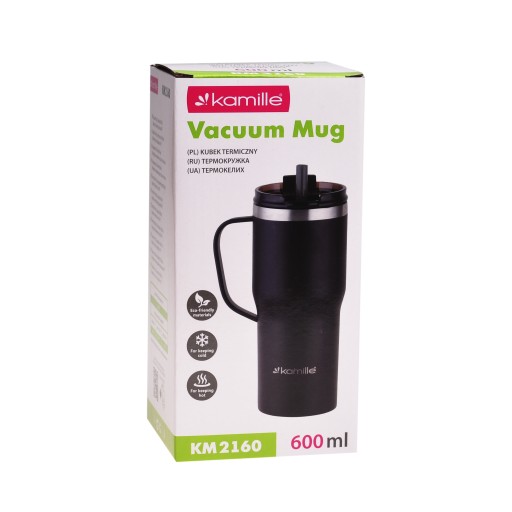 Kubek termiczny sportowy 600ml ze stali nierdzewnej ze stalową rurką KAMILLE KM-2160