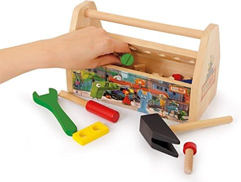 Warsztat małego budowniczego z motywami Ritter Rost to świetna zabawa z wkręcaniem i wbijaniem młotkiem klocków oraz świetne ćwiczenie do trenowania umiejętności motorycznych Wykonana z dokładnie obrabianego i drobnego drewna bukowego ta obudowa z wspaniałymi motywami Ritter Rost (Rusty the Knight) i jego przyjaciół, spełnia wysokie wymagania małych budowniczych.