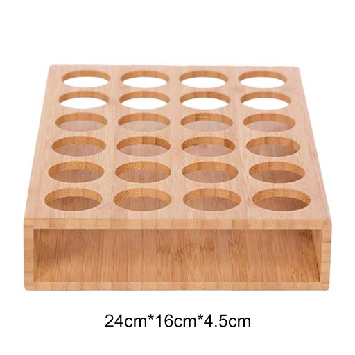Mieści do 24 butelek: około 24x16x4,5 cm, może pomieścić do 24 olejków eterycznych. Każda komora jest odpowiednia na butelkę o pojemności 15 ml. Zasadniczo uniwersalny dla wszystkich butelek olejków eterycznych.