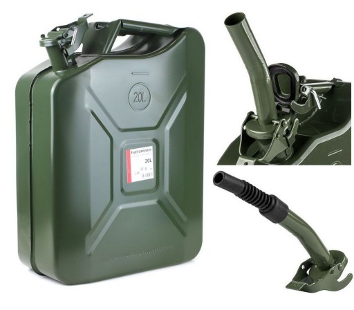 Metalowy kanister przeznaczony do przewożenia i przechowywania różnego rodzaju cieczy. Wykonany ze stalowej blachy, dwustronnie malowany proszkowo, dzięki czemu charakteryzuje się wysoką odpornością na korozję oraz warunki atmosferyczne. Wyposażony jest w uszczelkę umieszczoną pod korkiem oraz ocynkowaną zawleczkę w kształcie "L" jak dodatkowe zabezpieczenie. Kanister posiada certyfikację UN co pozwala na bezpieczne przechowywanie wszelkich paliw w tym benzynę i olej napędowy.