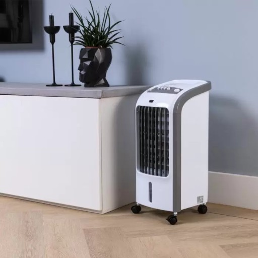 Dodatek wody zapobiega nadmiernemu wysuszeniu powietrza i zbyt niskiemu poziomowi wilgotności w pomieszczeniu. Chłodnica stoi na 4 kółkach, dzięki czemu można ją łatwo przenieść do innego pomieszczenia, nawet gdy jest wypełniona.