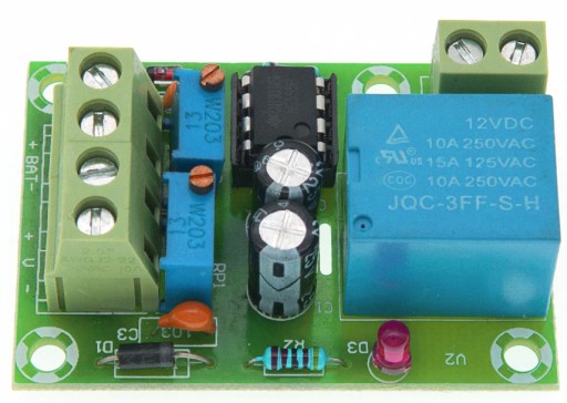 Zapobiega uszkodzeniu akumulatora przez nadmierne rozładowanie. Podłączony prostownik do akumulatora załącza się w momencie kiedy napięcie spadnie poniżej ustalonej potencjometrem wartości (np. 12V) oraz wyłączy się kiedy napięcie osiągnie określoną wartość (np. 14.8V)