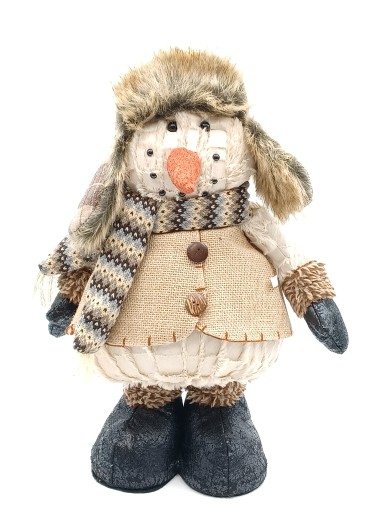 Bałwan wykonany z dobrej jakości materiałów, z dbałością o wszystkie szczegóły. Ciepłe kolory.