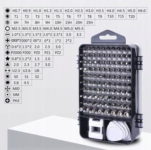 Zestaw śrubokrętów sprawdzi się w każdym warsztacie, a także w gospodarstwie domowym, zwłaszcza, jeśli lubisz dokonywać różnych napraw. Precyzyjne oprzyrządowanie posłuży Tobie do szczególnie delikatnych serwisów np. do telefonów, smartfonów takich jak iPhone, laptopów, ps4 oraz wielu innych przedmiotów. Asortyment składający się ze 115 elementów pozwoli Tobie na użycie odpowiedniego wkrętaka i innego narzędzia w niemalże każdej sytuacji.