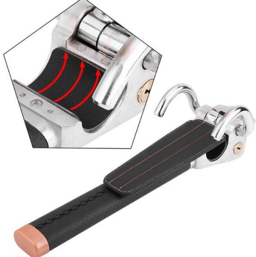 ✅ Elegancki wygląd: Stylowy design z czarną skórą i srebrnym korpusem, co sprawia, że blokada nie tylko chroni, ale także dodaje elegancji wnętrzu samochodu.
