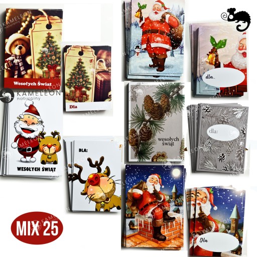 BILECIK ZAWIESZKA PRZYWIESZKA ETYKIETA DO PREZENTU ŚWIĘTA MIX WZORÓW 25szt