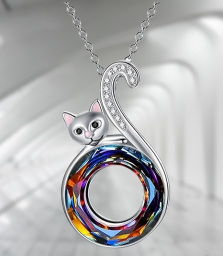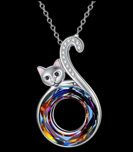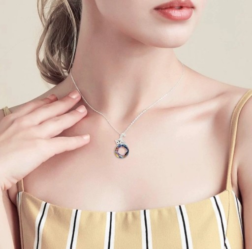 Naszyjnik Srebrny Kotek, Szkło Kwarcowe Multicolor