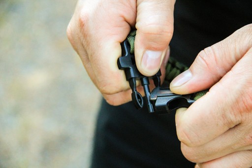Klamra posiada także wbudowany gwizdek, z którego z łatwością można wydobyć wysoki, ostrzegawczy dźwięk. Zapięcie przymocowane jest do paracordowej linki – lekka, wytrzymała, stosowana w spadochronach, a tym samym o szerokim zastosowaniu podczas aktywności survivalowej. Można ją wykorzystywać na wiele sposobów, a jej przeznaczenie jest ograniczone jedynie wyobraźnią użytkownika.