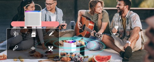 - Ten przenośny głośnik Bluetooth jest wyposażony w dwa mikrofony, które umożliwiają interakcję z przyjaciółmi i zwiększają radość ze spotkań. Zaawansowana technologia aktywnej redukcji szumów i procesor dźwięku zapewniają, że każde śpiewane słowo brzmi idealnie.