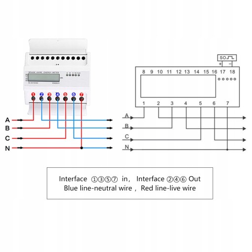 Счетчик электроэнергии, 3-фазный, 4-проводной, 7-контактный ЖК-дисплей