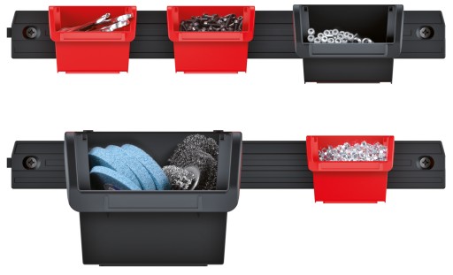 Wysokiej jakości zestaw składający się z 16 kuwet w 4 różnych wielkościach oraz 2 wersjach kolorystycznych. Dodatkowo dołączone zostały listwy - 5 sztuk, przeznaczone do ściennego montażu kuwet. Zestaw idealnie sprawdzi się w zarówno w magazynie jak i przydomowym garażu.