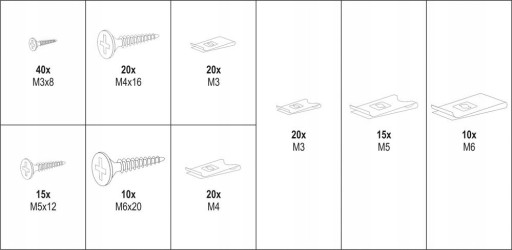 Zestaw 170 sztuk wkrętów i podkładek do karoserii. Zestaw zawiera rozmiary wkrętów i podkładek od M3x8 mm do M6x20 mm. Całość umieszczono w wygodnym opakowaniu typu "sortownik".