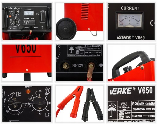 ZESPÓŁ PROSTOWNIKOWY Z FUNKCJĄ ROZRUCHU V650 12V/24V 90A START - 540A VERKE + KABLE ROZRUCHOWE