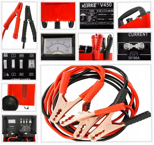 ZESPÓŁ PROSTOWNIKOWY Z FUNKCJĄ ROZRUCHU V450 12V/24V 55A START - 320A VERKE + KABLE ROZRUCHOWE