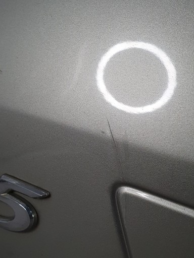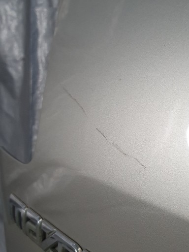 KLAPA POSIADA, RYSY, ODPRYSKI, DWA PĘKNIĘCIA W GÓRNEJ CZĘŚCI ORAZ LEKKIE WGNIECENIE W OKOLICY BLENDY JAK WIDAĆ NA ZDJĘCIACH.