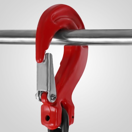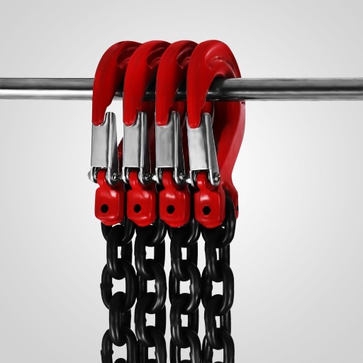 To czterocięgnowe zawiesine łańcuchowe składane z zabezpieczeniem ze stali G80 Mn i haka ze stali stopowej z wykończeniem malowanym proszkowo, które nie jest odporne na pod obciążeniem. Jest to możliwe, gdy następuje zniszczenie i temperatura, co zapewnia bezpieczeństwo. Jest to narzędzie stosowane do wydajności pracy.