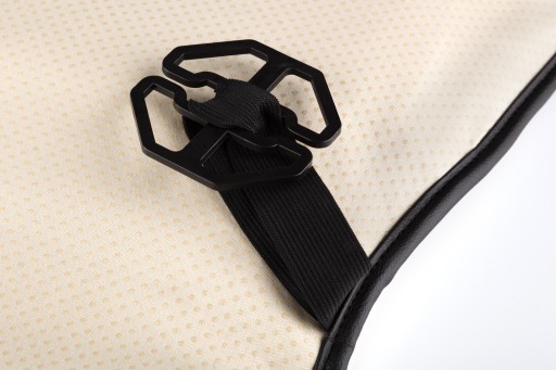 Wyposażona w elastyczne paski mocujące, może być zamontowana w mgnieniu oka bez specjalistycznych narzędzi. Jej uniwersalna lekka konstrukcja i klasyczny design, pozwala na idealne dopasowanie do każdego typu samochodu. Dystansowa tkanina, z której została wykonana jest delikatna dla skóry i nie wywołuje podrażnień.