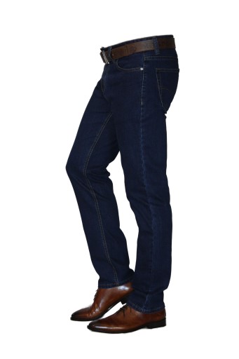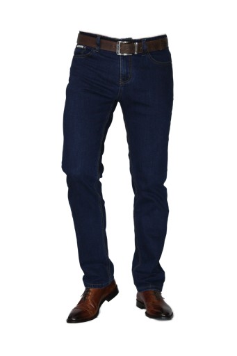 Nasz sklep internetowy w swojej ofercie posiada podstawowe modele spodni dla każdego mężczyzny tj.: jeans , chinos (wizytowe),bojówki ,o mniej lub bardziej wyszukanych wzorach w szerokiej gamie kolorów . Spodnie jeansowe są podstawowym elementem męskiej garderoby które zapisały się na stałe w modzie męskiej. Jeansy męskie można zakładać na każdą okazję i w każdą porę roku. Każdy mężczyzna na pewno w swojej szafie posiada przynajmniej jedną parę spodni jeansowych. Dzięki różnym możliwościom jakie dają nam jeansy możemy założyć je na sportowo, oraz także elegancko . Coraz częściej Panowie łączą spodnie jeansowe z marynarką czy koszulą .Wychodząc na bardziej oficjalne wyjścia warto wybrać spodnie w klasycznym granatowym kolorze . Sukcesem dobrego wyglądu jest dobranie odpowiedniego koloru oraz rozmiaru . Spodnie jeansowe męskie o prostej nogawce w kolorze ciemno granatowym bez przetarć . Produkt wykonany z bawełny i niewielkiej ilości elastanu. Uniwersalny model , który doskonale komponuje się z pozostałymi częściami garderoby. Model ten rewelacyjnie wygląda w połączeniu z koszulą z długim lub krótkim rękawem, oraz do koszulki polo lub t-shirtu. Ogromną zaletą spodni z dodatkiem elastanu jest ich niewątpliwa wygoda oraz komfort użytkowania. Spodnie dopasowują się do każdej sylwetki, jednocześnie nie ograniczają ani nie krępują ruchów. Efekty chemiczne i obróbka końcowa sprawiają , że spodnie nawet wielokrotnie prane czy prasowane długo zachowują swój kolor i fason. Odpowiednio dobrane do swojej sylwetki sprawią że poczujemy się dobrze oraz usatysfakcjonowani i pewni ze swego wyglądu .